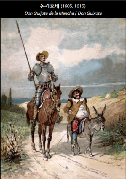"17세기 초 미구엘 데 세르반테스가 쓴 "돈키호테"는 세계 문학에서 가장 오래 지속되는 소설 중 하나입니다. 돈키호테 데 라만차와 애마 로시난테, 그리고 산초 파나의 모험담입니다. 서양에서는 최초의 근대 소설이라 여겨지며, 스페인은 물론 유럽문학사에서도 위대한 명작으로 꼽힙니다.